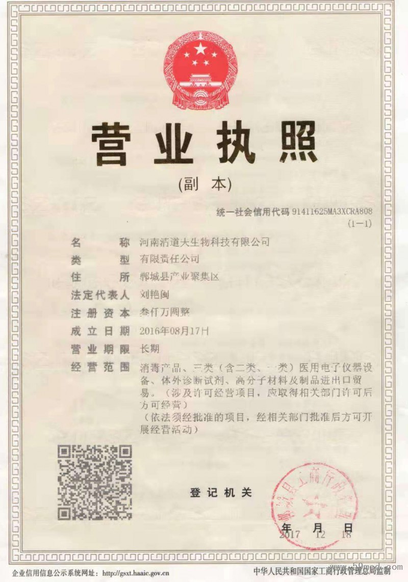 生產(chǎn)銷售:消毒產(chǎn)品、一類醫(yī)療器械、二類醫(yī)療器械、三類醫(yī)療器械、醫(yī)用電子儀器...