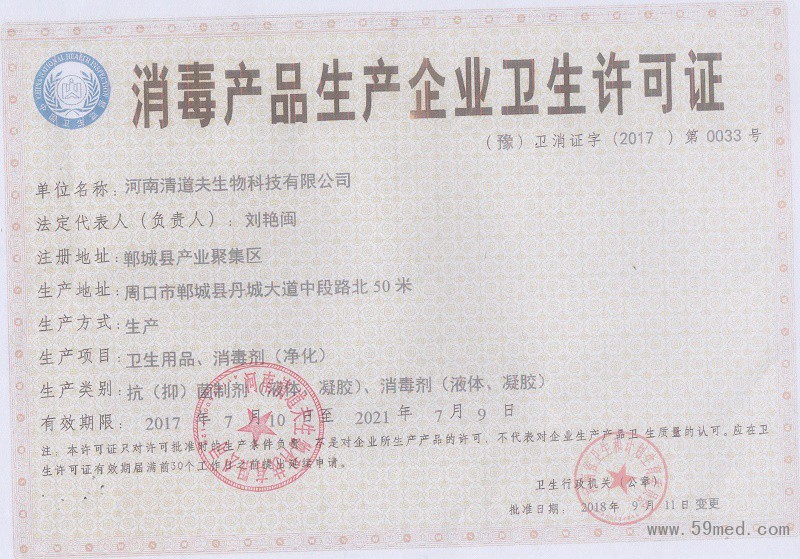 | 發(fā)證機(jī)構(gòu): | ??河南省衛(wèi)生和計(jì)劃生育委員會(huì) | 發(fā)證時(shí)間 : | ??2018-09-11 |