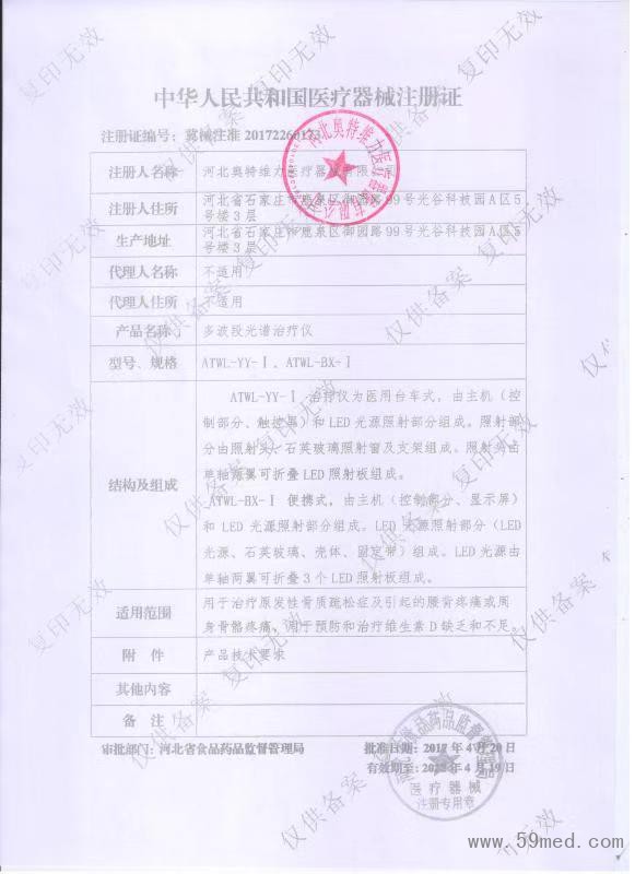 中華人民共和國醫(yī)療器械注冊證