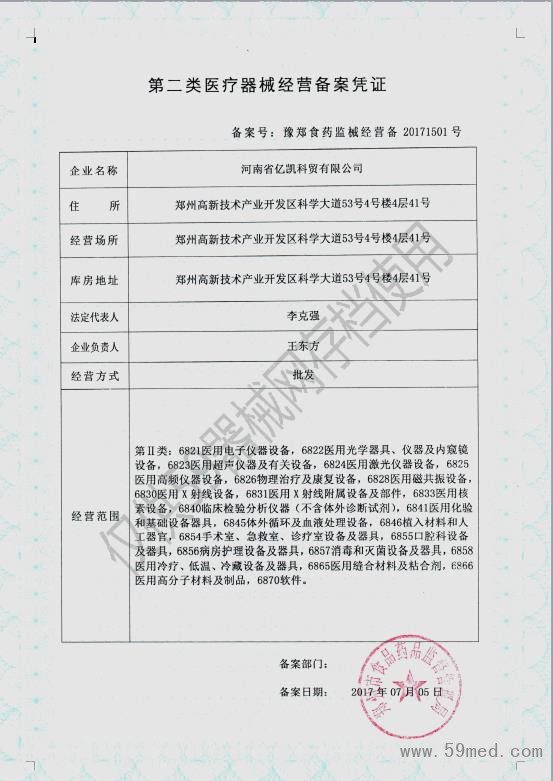 首頁 > 榮譽(yù)資質(zhì) > 第二類醫(yī)療器械經(jīng)營備案憑證