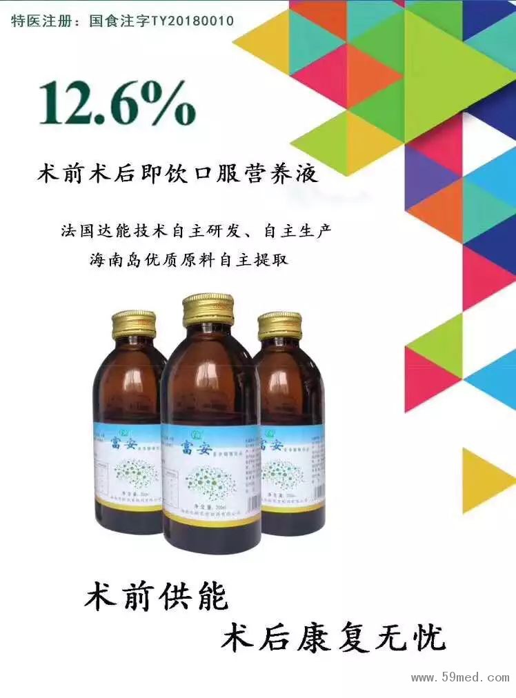 國內(nèi)獨家特醫(yī)注冊上市,編號TY20180010,符合中華醫(yī)學(xué)會外科指南和麻醉科指南,為擇期手術(shù)患者快速補充能量,極大緩解口渴、焦慮、饑餓感,加速傷口愈合,縮短住院時間,節(jié)約住院費用。