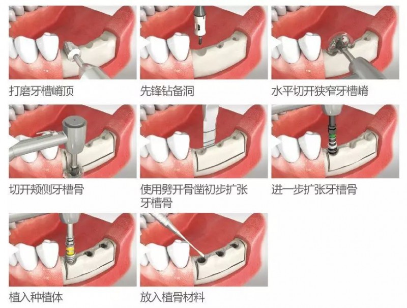 - 在擴(kuò)張骨前,通過(guò)切開(kāi)1mm頰側(cè)下方的牙槽骨可防止牙槽骨斷裂