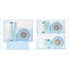 根據(jù)待滅菌物品的體積,截取合適長度的包裝袋,裝入滅菌物品后兩端用封口機封口(封口溫度為180℃-200℃),將包裝袋放入滅菌器內(nèi)進行滅菌處理,滅菌完成后,取出包裝袋觀察醫(yī)用透析紙表面的指示色塊變色情況,如果指示色塊顏色發(fā)生變化,(壓力蒸汽滅菌后指示色塊顏色由藍色變?yōu)楹谏?,環(huán)氧乙烷滅菌后指示色塊顏色由紅色變?yōu)辄S色),說明包裝袋已經(jīng)過壓力蒸汽或環(huán)氧乙烷滅菌處理。